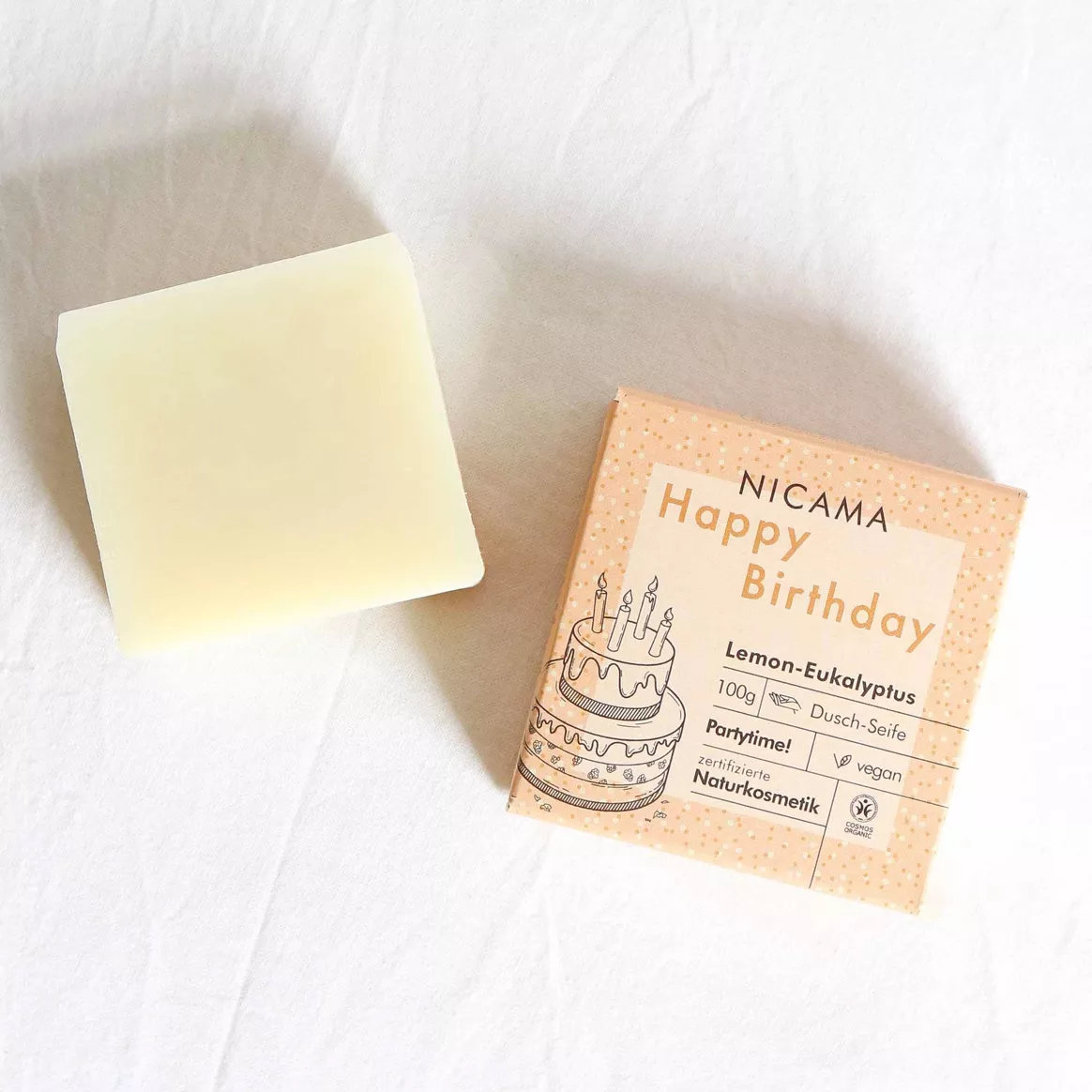 Produktinformationen "NICAMA - Happy Birthday Geburtstags-Seife - Lemon-Eukalyptus - 100g"