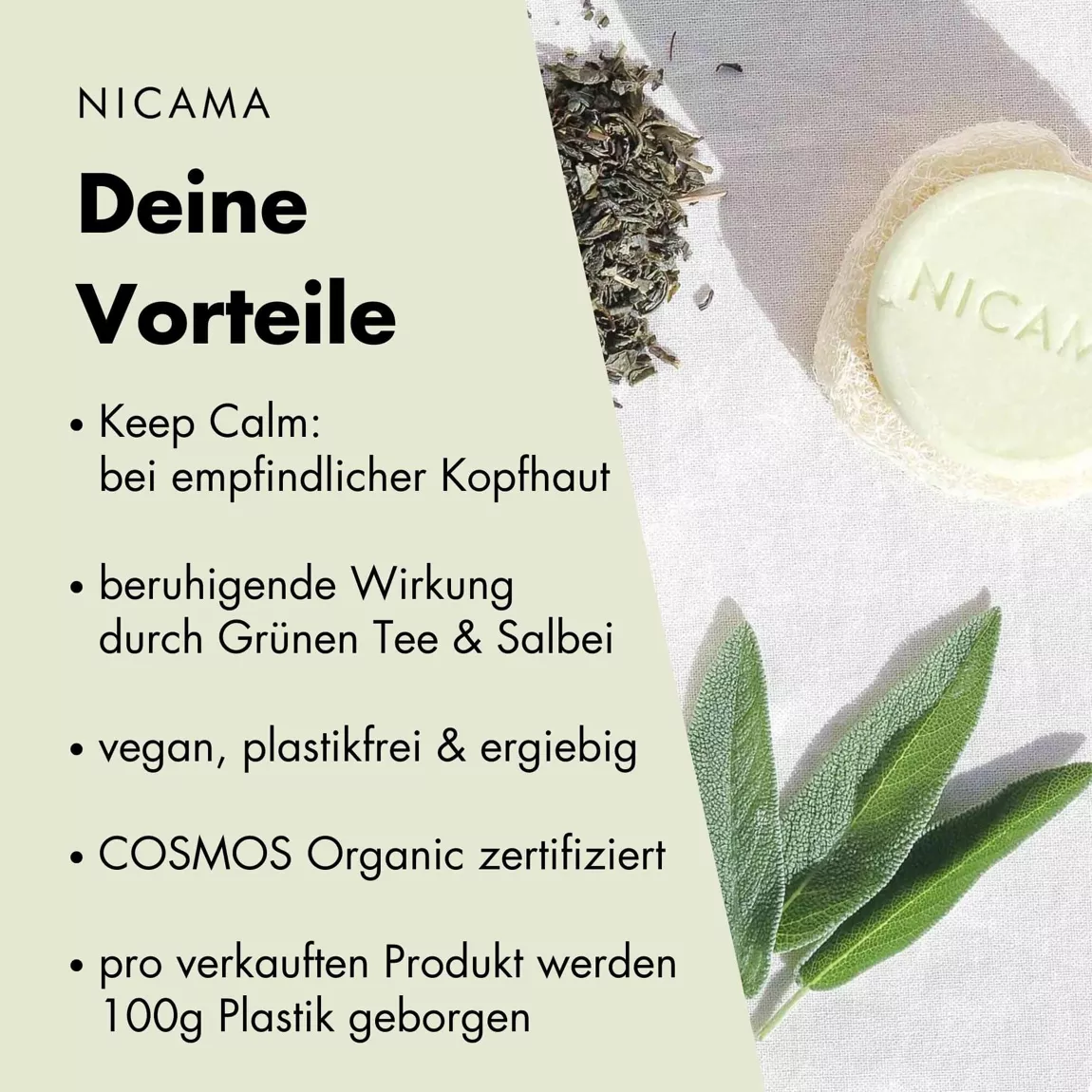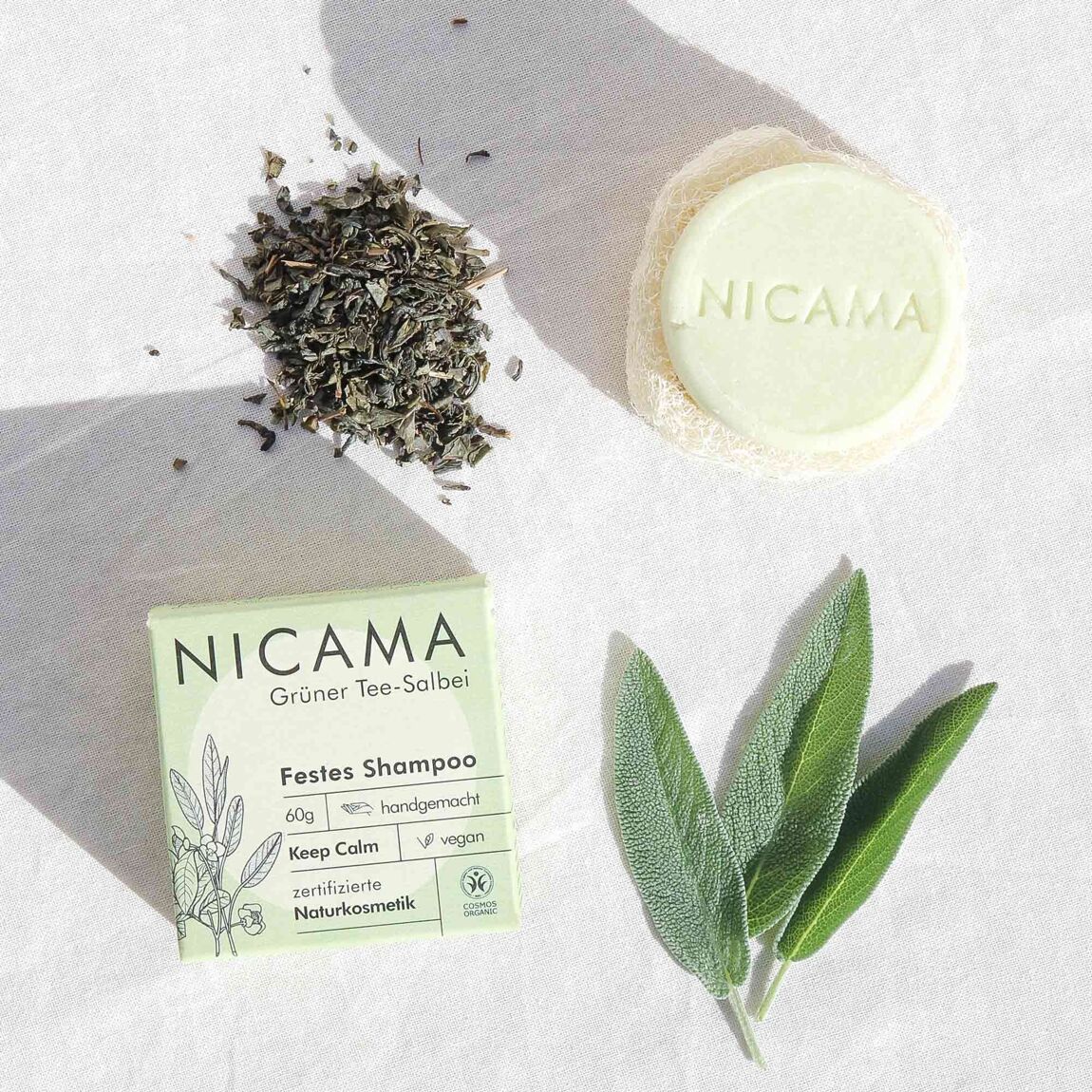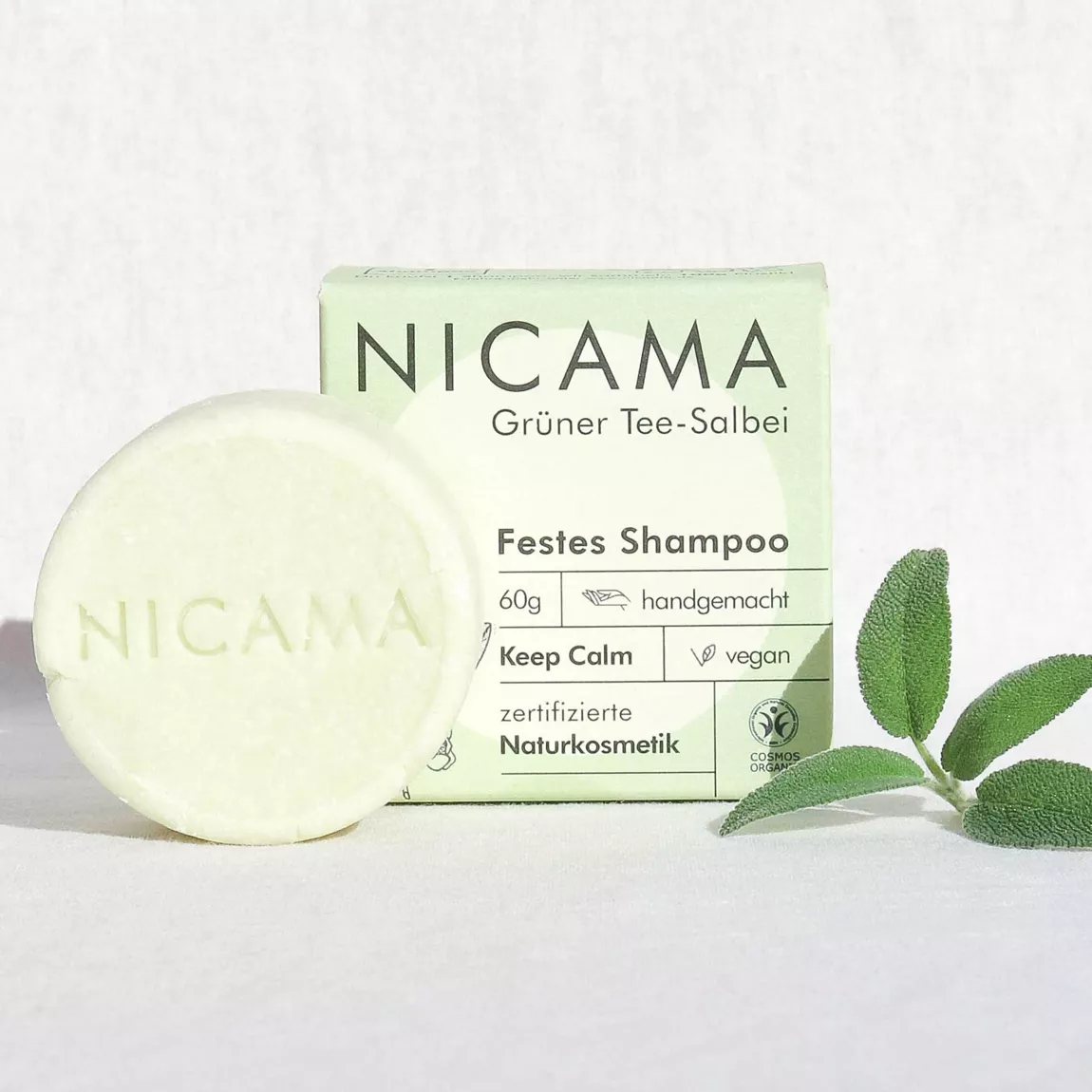 Produktinformationen "NICAMA festes Shampoo grüner Tee-Salbei (COSMOS) - 60g"